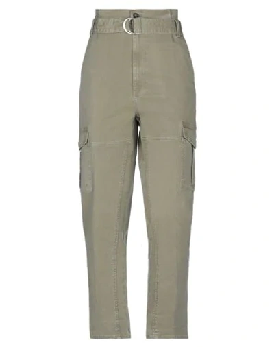 twill, basic solid color, belt, low waisted, regular fit, straight leg, button, zip, multipockets, stretch , Color: Military green , Size: 31