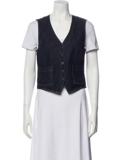 FRAME Vest Blue Printed Collarless Patch Pockets & Button Closure Fit: Jackets by FRAME typically fit true to size. | FRAME Printed Vest in Blue, Women's S