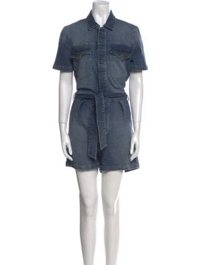 FRAME Romper Blue Short Sleeve with Collar Button Closure at Front Fit: Jumpsuits and Rompers by FRAME typically fit true to size. | FRAME Romper in Blue, Women's M