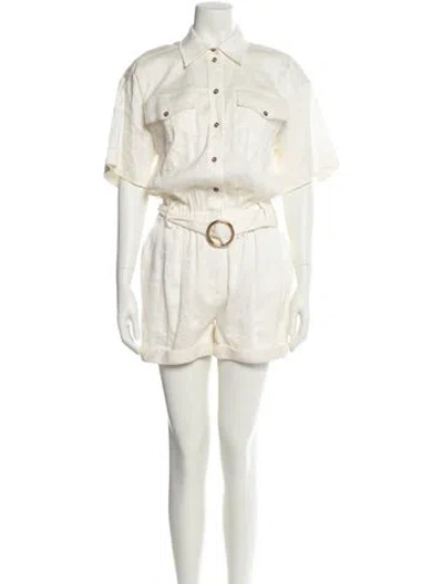 FRAME Romper Neutrals Short Sleeve with Collar Button Closure at Front Fit: Jumpsuits and Rompers by FRAME typically fit true to size. | FRAME Romper w/ Tags in Neutrals, Women's S