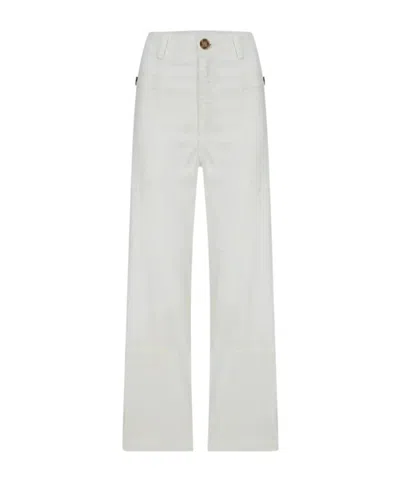Belt loops, flat seams at the knees, oversized front pockets and concealed zip and button closure.