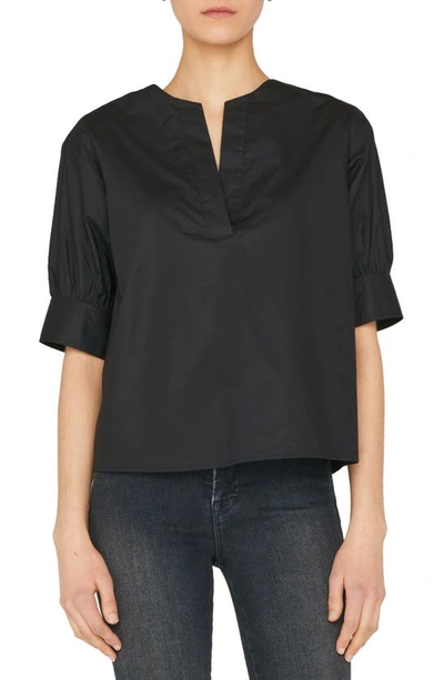 FRAME Split Neck Organic Cotton Popover Top In Noir