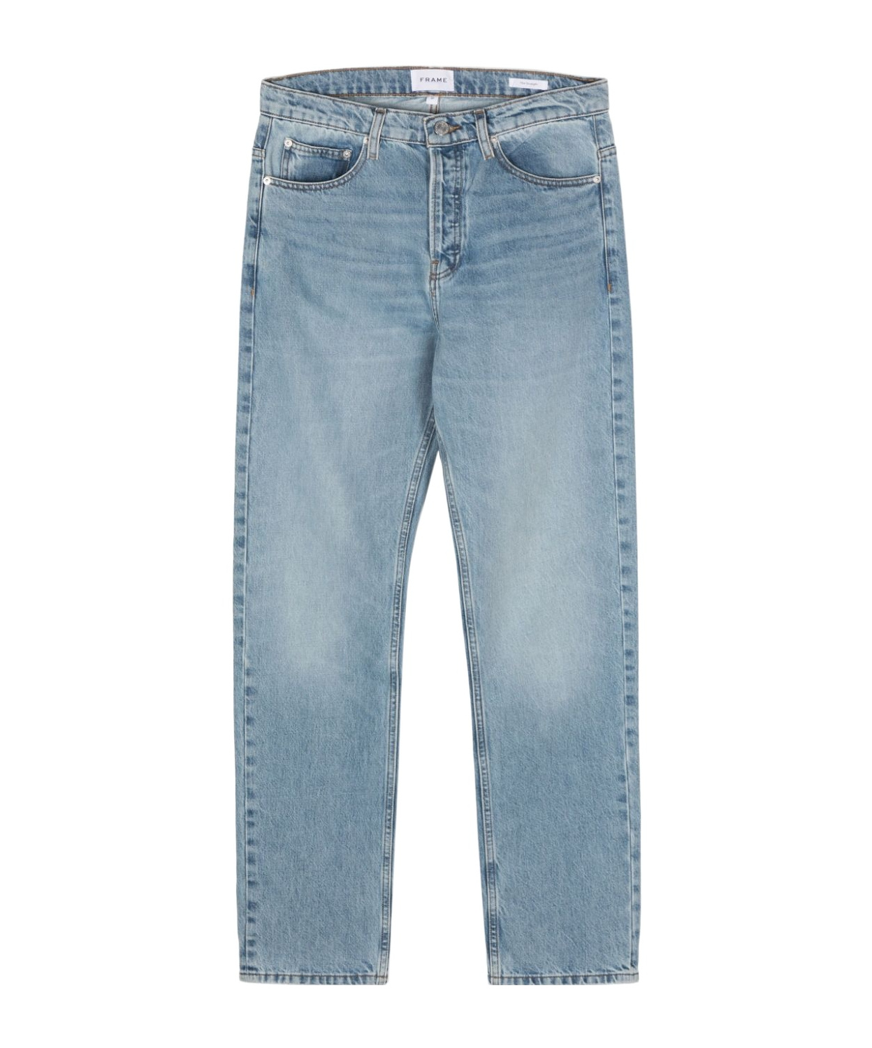 Info & Care Frame denim jeans Mid-rise fit, straight-leg cut, belt loops, five pockets, slightly distressed and faded finish Partially concealed button fastenings;at front 80% regenerative cotton, 20% post-recycled cotton Machine wash cold inside out to avoid colour transfer Size & Fit Front rise: 11.5 inches/ 29m Inside leg length: 31 inches/ 78.5cm Midweight Model is 6'1"/ 185cm and wears a size;W32