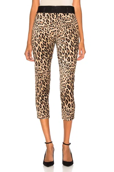 Upgrade your wardrobe with these cropped pants, designed to merge sophistication and wearability. The tailored fit ensures ultimate comfort during long days or nights out.These pants are crafted from luxurious velvet fabric with a subtle sheen. They feature hook and bar front closures, side slit pockets, and back welt pockets for a refined look. The composition includes 75% cotton, 23% tencel, and 2% spandex, with a contrast fabric made from 100% polyester. Dry clean only. Measurements for size 2 - inseam 24.5 inches, rise 11 inches.