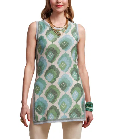 FRANCES VALENTINE Robbie Top Graphic Leaf In Blue/green/multi