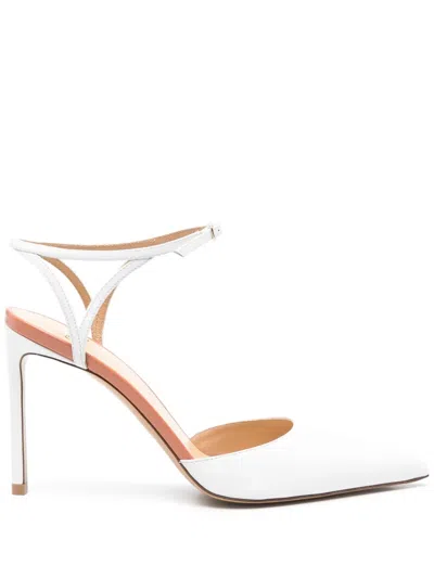 white buckle-fastening ankle strap pointed toe 90mm stiletto heel