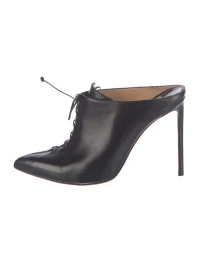 Francesco Russo Leather Mules Black Pointed-Toes Lace-Up Closure at Uppers Unfortunately, due to restrictions, this item may not be eligible for shipping in all areas. | Francesco Russo Leather Mules in Black, Women's IT 39 | 9