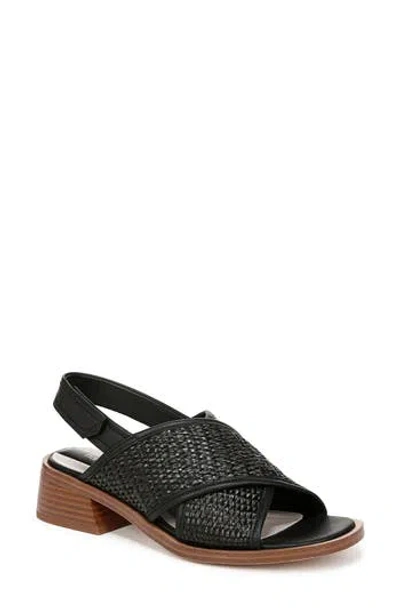 Finely woven straps crisscross over the vamp of of a weekend-ready slingback sandal grounded by a cushioned footbed and low stacked heel for walkable height. 1 1/2" heel Adjustable slingback strap with hook-and-loop closure Cushioned footbed Textile or synthetic upper/synthetic lining and sole Imported