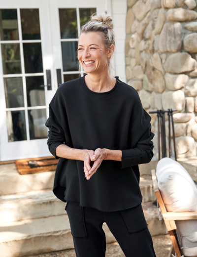 We could not live without our daily Capelet fix, but…seasons change, and bare arms get chilly! This perfect Capelet is just as relaxed on the body and flattering in fit as the Original version—but with sleeves. Shop at Frank & Eileen for Women's Long Sleeve Capelet, Anna, Triple Fleece, Available in Size L, Black.