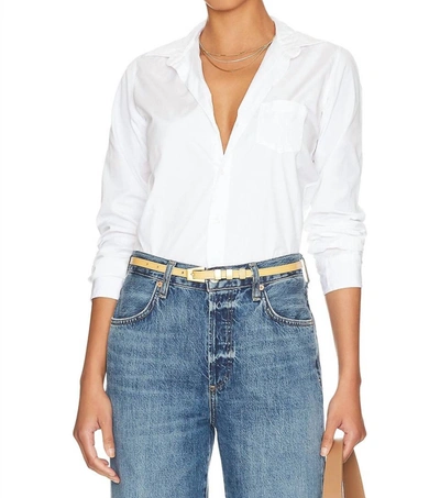 Frank & Eileen Barry Woven Button Up in White. - size S (also in L, M, XS) Frank & Eileen Barry Woven Button Up in White. - size S (also in L, M, XS) 100% cotton. Made in Mexico. Machine wash. Front button closure. Breast slip pocket. Buttoned cuffs. Lightweight poplin fabric. FNKE-WS157. BARRY-WHTD. B Corp-certified and led by women, Frank & Eileen is setting the standard for slow and sustainable fashion. Using the finest Italian fabrics in the world, founder Audrey McLoghlin sought to reinvent the button-up shirt for women. Frank & Eileen took an article of clothing that was originally made for men, and turned it into an iconic female fashion staple. From linen to denim, the artisans at Frank & Eileen knit, sew, wash, and dye every piece by hand. Looking good and feeling good go hand-in-hand at Frank & Eileen, where company values are just as important as the quality of the clothing.