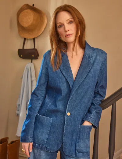 An impossibly chic blazer, inspired by Julianne Moore's signature NYC style. Just roomy enough to fit a layer underneath or to be worn solo, Bond is so wearable and easy to style for busy days running around the city. Shop at Frank & Eileen for Women's Nyc Boyfriend Blazer, Bond, Italian Dream™ Light Denim, Available in Size XL, Indigo.