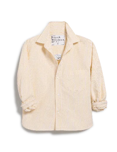 Silvio fuses modern Italian tailoring with California cool. The unique, fashion-forward detailing—an exaggerated back pleat, oversized envelope pocket, and petite square fit—means all the styling is done for you. Shop at Frank & Eileen for Women's Untuckable Button Up Shirt, Silvio, Italian Brushed Oxford, Available in Size M, Yellow.