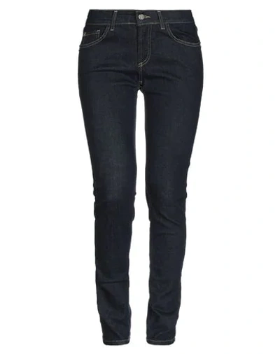 denim, logo, solid color, dark wash, mid rise, front closure, button closing, multipockets, stretch , Color: Blue , Size: 26