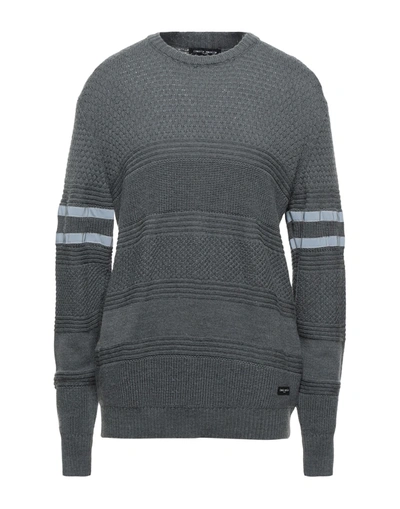 knitted, logo, lightweight knit, round collar, solid color, long sleeves, no pockets , Color: Lead , Size: L