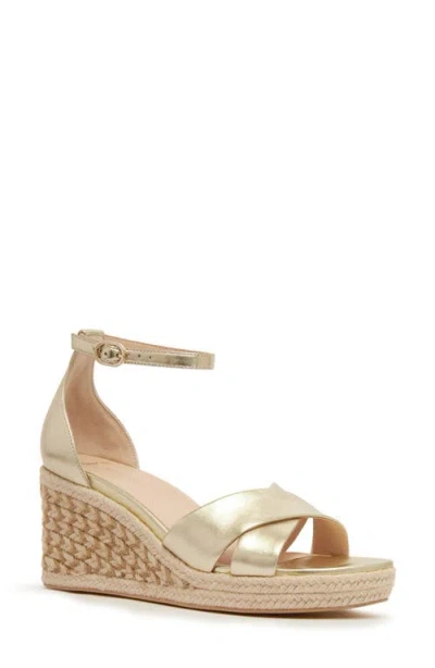 Baker Ankle Strap Espadrille Platform Wedge Sandal In Gold Tumbled