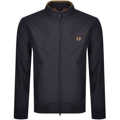 Fred Perry Brentham Jacket in Navy. Fondly named after the Brentham Tennis Club in West London where Fred Perry first started out his professional career, this trans-seasonal silhouette is presented in durable nylon twill with a two-way zip closure and a protective stand collar. Ideal for when inclement weather strikes, the practical piece is finished with inner twin tipped accents and an external Laurel Wreath logo.A fully-lined nylon-twill sports jackets, designed with our signature twin tipping inside the neck.Durable nylon twill / Nylon lining / Two-way zip / Twin tipped hem.Based on traditional British outdoor gear, the Brentham jacket fuses sports styling with a smart aesthetic. Taking its name from Brentham Tennis Club in West London, where Fred first trained a century ago, the jacket is designed as protection against the elements. A simple design, using superior fabric, the hardwearing nylon twill is tough but lightweight. Perfect for the unpredictable outdoors.Material Nylon.Neckline Funnel neck.Top fit type Regular.Sleeve type Long sleeve.Durable nylon twill.Two-way zipper.Laurel Wreath embroidery.Ribbed cuffs & hem.100% Polyamide.