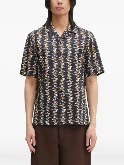 FRED PERRY Camp-collar Patterned Shirt In Black