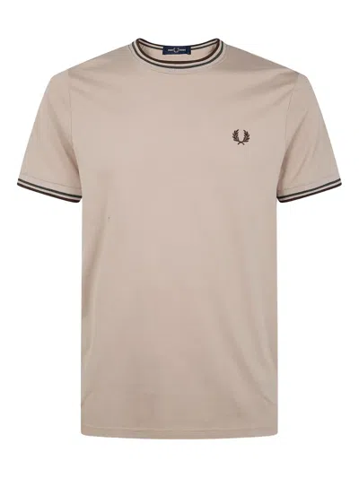 FRED PERRY Laurel-motif Contrasting-trim T-shirt In Neutral