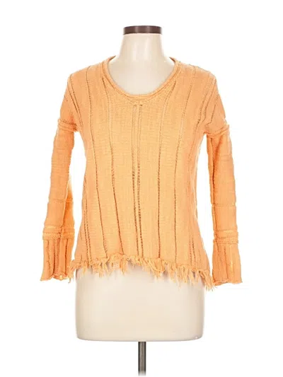 Free People Pullover Sweater, Size: Large. Item Details: Orange, Scoop Neck, 3/4 Sleeve, Fringe, Women's Tops