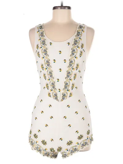 Free People Romper, Size: 2. Item Details: White, Crew Neck, Flared Leg, Sleeveless, Beaded, Women's Dresses, Rayon/Cotton