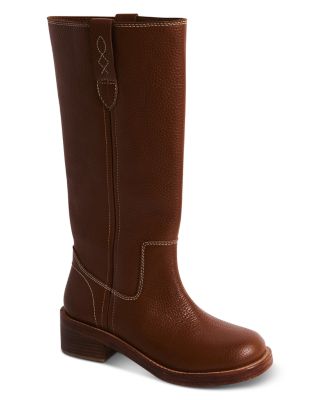 Rainboots so cute, you'll want to wear these even on the lightest drizzle days.Step into the past with the Free People Blaze Pull-On Boots in a charming vintage tan. These tall boots feature a wide boot shaft and a stylish squared-off toe, complete with distressed details for an effortless retro vibe. The leather uppers and low stacked leather block heel ensure both durability and comfort. Perfect for pairing with anything from shorts to dresses, these boots are a versatile addition to your winter wardrobe.