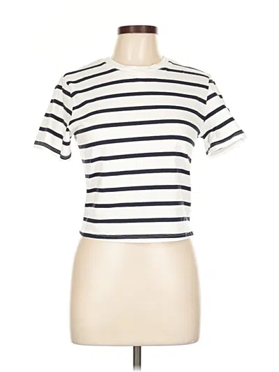 French Connection Short Sleeve Turtleneck, Size: Large. Item Details: Ivory, Stripes Pattern, Mock Neckline, Women's Tops, Cotton/Spandex