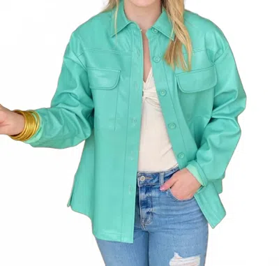 A casual yet cool jacket that every closset needs.Introducing the Luna Button Down Jacket by FRNCH, an elegant addition to your fall wardrobe. This long sleeve, 27-inch jacket in a solid green hue is crafted from 100% polyurethane for a sleek look. Featuring a classic collar, button closure, and practical pockets, it's ideal for travel and perfect for Thanksgiving occasions. Care - Hand wash and line dry to maintain its preppy charm.