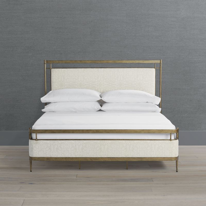 Taking inspiration from French antiques, our Angelina Bed is a celebration of neoclassical style. Upholstered floating headboard, gentle wrap-around footboard and siderails bring a streamlined softness to the low-profile metal frame.Iron frame . Four metal support slats. Performance fabric resists stains and repels water and oils, ensuring easy cleaning. To prevent injuries or damage to item, recommended team lift (two or more people) for furniture placement. Designed to be used with a mattress and box spring. Queen Bed assembly required. King Bed assembly required. Imported. A Frontgate exclusive.At Frontgate, our primary focus is quality. We guarantee that every product we sell will stand up to the supreme test our customers' satisfaction. To learn more about our policies, visit our Shipping & Processing, Returns & Exchanges and Warranty & Price Guarantee pages.