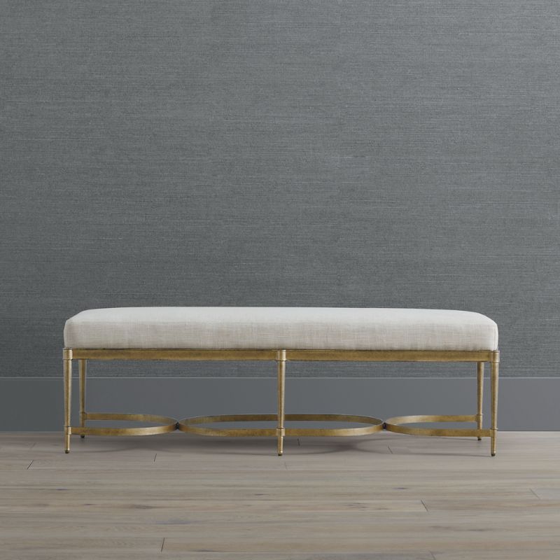 Our Angelina Bench adds a touch of modern style to any space. Crafted of iron with your choice of a Matte Black or Brass finish, this stylish bench is upholstered in your choice of fabric and features a high-density foam cushion for exceptional comfort.Iron frame. High-density foam cushion. Performance fabric resists stains and repels water and oils, ensuring easy cleaning. Handcrafted finishing details. Nonmarring foot glides. Arrives assembled. Imported. A Frontgate exclusive.At Frontgate, our primary focus is quality. We guarantee that every product we sell will stand up to the supreme test our customers' satisfaction. To learn more about our policies, visit our Shipping & Processing, Returns & Exchanges and Warranty & Price Guarantee pages.