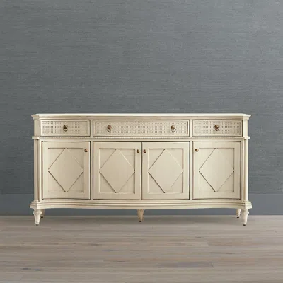 <div class="updp-details-container">Intricate handcarved details in the style of Louis XVI distinguish our solid mahogany Beauvier Sideboard. Classic Greco-Roman ornamentation includes elegant brass drawer pulls and carved beading, lozenge designs and gadrooning on the pilaster-style legs. Three top drawers with caning on the front offer easy-access storage. Four doors below open to ample and customizable storage, including three adjustable shelves that are flat on one side and slotted on the other for secure wine bottle storage. Integrated USB-C and AC charging ports, along with a power strip and cord management system, further elevate the utility.Solid mahogany and engineered hardwood with mahogany veneer. French Patina or French Linen finish. Each item has a 15-step hand-finishing process and aged patina; finishes may slightly vary. French Patina finish is a light blue/green with an antiqued glaze. Brass hardware. Design based on a French antique. Handcrafted details on drawer fronts and legs. Serpentine front. Caning on drawer fronts. Raised diamond panels on door fronts. Handcarved beading details. Three drawers with self-closing full-extension slides . Three adjustable and removable shelves, flat on one side and slotted on the other for secure wine bottle storage. Integrated power strip with type A and type C USB ports. 6-1/2 cord. Adjustable levelers. Part of the Beauvier Collection. For indoor use. Included anti-tip kit is required for installation; kit consists of safety-tested mounting hardware, a nylon strap and instructions. To prevent injuries from furniture tipping over, this item must be permanently affixed to the wall; professional installation is recommended. To prevent injuries or damage to item, recommended team lift (two or more people) for furniture placement. Arrives assembled. A Frontgate exclusive.At Frontgate, our primary focus is quality. We guarantee that every product we sell will stand up to the supreme test our customers satisfaction. To learn more about our policies, visit our Shipping & Processing, Returns & Exchanges and Warranty & Price Guarantee pages.