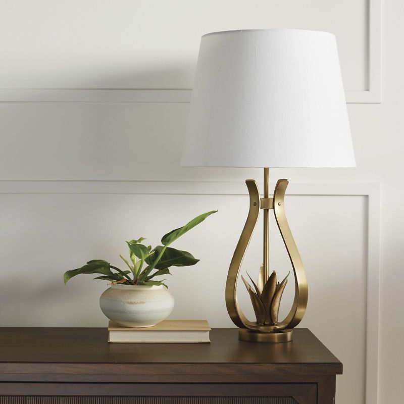 <div class="updp-details-container">Inspired by our best-selling Bloom Pendant with an artistic interpretation of tulip petals starting to bloom, this beautiful lamp is crafted of iron with a brushed brass finish. Perfect for an entryway, living area or wherever you need floral-inspired lighting.Made of Iron with a brushed brass finish. White linen tapered shade. Requires one 60-watt or LED equivalent A19 bulb. E26 socket type. 6 ft. clear cord. Dimmer switch. Wipe with soft dry cloth. Imported . A Frontgate exclusive.At Frontgate, our primary focus is quality. We guarantee that every product we sell will stand up to the supreme test our customers satisfaction. To learn more about our policies, visit our Shipping & Processing, Returns & Exchanges and Warranty & Price Guarantee pages.