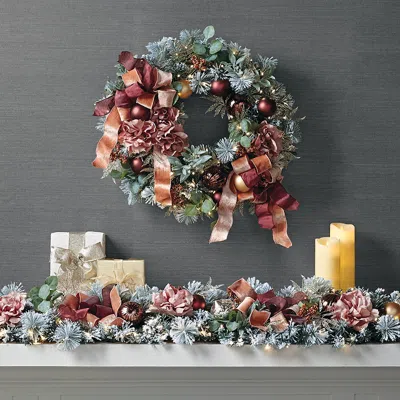 This festive greenery collection features lambs ears, crinkle rose, frosted bristle pine and glittered spruce on a bed of faux pine accented with glass ornaments. Designed to coordinate with our Blushing Berries Collection and pre-lit with 100 warm white LED lights, this greenery adds festive style to your holiday decor. Coordinates with Blushing Berries Collection. For indoor use. Lifelike greenery with glass ornaments. 100 warm white LED lights. Use the built-in timer option to automatically turn the lights on for 8 hours and off for 16 hours. Requires three C batteries (not included). Three-wire system provides even lighting exposure and reduces fading. Fluff and shape greenery after unpacking. Wipe clean with a soft, dry cloth or duster. Store in a bag in a cool, dry location protected from sunlight. Imported. A Frontgate exclusive. At Frontgate, our primary focus is quality. We guarantee that every product we sell will stand up to the supreme test our customers' satisfaction. To learn more about our policies, visit our Shipping & Processing, Returns & Exchanges and Warranty & Price Guarantee pages.