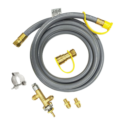 This kit safely converts compatible fire tables from liquid propane to natural gas use. It includes a natural gas hose, quick connect, valve, clamp, and two nozzles.Converts the following fire tables from liquid propane to natural gas: Bryndle Root Fire Pit, Bryndle Root Square Fire Table, and Bryndle Rectangular Fire Table.. For use on 50,000 BTU outdoor heating units. CSA certified. Kit Includes: 10-foot-long, 3/8-inch natural gas hose, quick connect, valve, clamp, and two nozzles. This kit should be installed by a qualified installer or service technician.