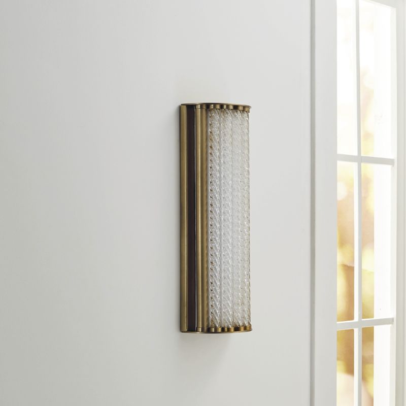 <div class="updp-details-container">Featuring elegant barley twist ribbed glass that catches the eye, our Cameron Wall Sconce was inspired by art deco theater lighting. It s the perfect way to add a touch of vintage style to any setting. This wall sconce can be hung vertically or horizontally to fit any space in your home.Frame made of Stainless Steel with a burnished brass finish. Twisted glass rods. Fabric diffuser between light source and glass rods for ambient glow. 10W integrated LED bulb. Can be hung horizontally or vertically. Hardwired (professional installation recommended). UL listed for damp environments. Clean with soft dry cloth; avoid the use of chemical cleaners to protect finish. Imported. A Frontgate exclusive.At Frontgate, our primary focus is quality. We guarantee that every product we sell will stand up to the supreme test our customers satisfaction. To learn more about our policies, visit our Shipping & Processing, Returns & Exchanges and Warranty & Price Guarantee pages.