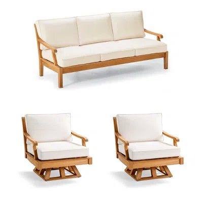 FRONTGATE Cassara 3-pc. Sofa Set With Two Swivel Lounge Chairs In Natural Teak