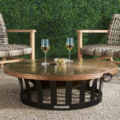 Crafted of hand-hammered solid copper, our Classic Copper Firepit Top transforms your firepit into an occasional table for drinks and food on evenings when a fire isnt needed. It features powdercoated aluminum handles for easy lifting and can also be flipped and used as a tray. Crafted of solid copper. Hand-hammered. Powdercoated aluminum handles. Tailored to fit our Classic Copper Firepit. Easily converts firepit to an occasional table. Can also be flipped and used as a tray. Prevents water from accumulating in fire bowl. A Frontgate exclusive.