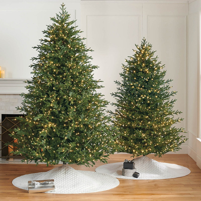 Created in the vision of an iconic evergreen, the Fraser Trees lifelike appearance will convince even the most discerning eye. Full branches and hinged construction ensure continued durability over the years. Long-lasting LED lights mimic an incandescent glow and are secured in place. Easy one-cord assembly in under 3 minutes. Lifelike needles are molded from natural cuttings. Tips are reinforced with heavy-gauge steel so you can securely hang your favorite ornaments. 7-1/2 ft. has 4,850 tips . 9 ft. has 6,772 tips. 10 ft. has 8,488 tips. 10,000-hour warm white LED lights. 7-1/2 ft. has 1,200 lights. 9 ft. has 1,500 lights. 10 ft. has 1,700 lights. 6 ft. power cord. Remote control. Powdercoated steel tree stand. Labels on each section take the guesswork out of assembly. 7-1/2 ft. version has four sections. 9 ft. has five sections. 10 ft. has six sections. To assemble:. Lift the lightweight pieces into the coupling. Push to click them into place. Then plug in a single cord. Shape tree by fluffing out the branches and tips. Tree Storage Bag (sold separately) recommended. For indoor use . A Frontgate exclusive.