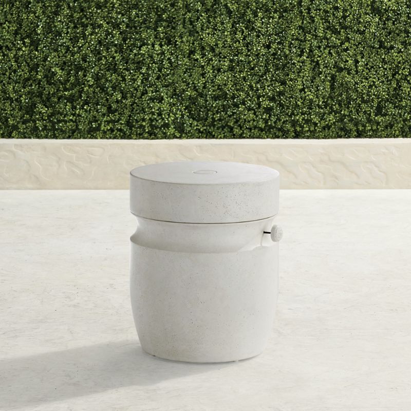 Sleek, stately design to complement any decor and umbrella. This stand has been crafted of an all-weather stone composite for lasting durability. Hand-cast faux-stone composite. Accommodates umbrellas up to 9 and poles up to 2" in diameter. Fill with 40 lbs. of sand for additional stability (not included). Includes umbrella hole cover. Turn handle clockwise to secure pole to base. Adjustable feet. Wipe clean with a soft, damp cloth. Coordinates with Corbyn Accent Stool. A Frontgate exclusive.