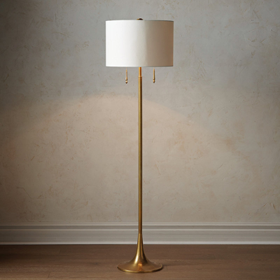 Add sophisticated illumination to your space with our Dabney Floor Lamp. Features brass construction and linen shades. Brass construction. Linen shade. Matching brass finial. Clean with a soft, dry cloth. Takes two 60-watt bulbs or equivalent (not included). Part of the Dabney Lighting Collection. Imported. A Frontgate exclusive.