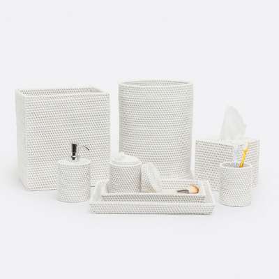 Each piece in our Dalton Countertop Collection is handcrafted of organically dyed rattan that beautifully elevates your bathroom decor. Handcrafted of rattan. Organic dyes. By Pigeon & Poodle. Wipe with a soft, clean cloth. Imported.