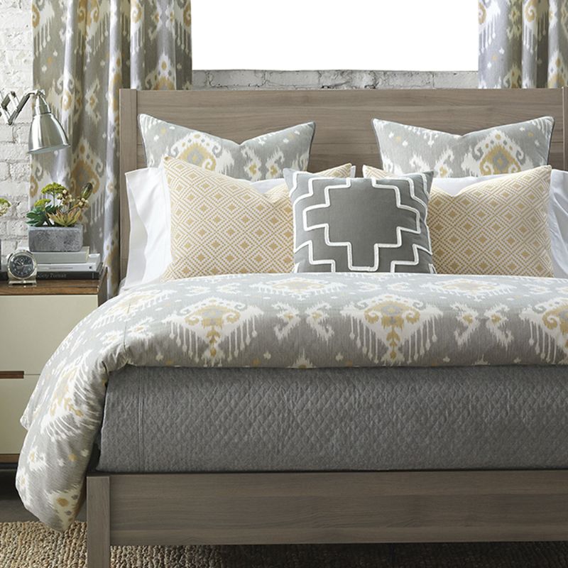 <div class="updp-details-container">The Downey Bedding Collection radiates confidence in strong stripes and fashionable ikat prints. Simple, attractive and versatile, this ensemble features natural cotton and linen fabrics with cool slate and gold hues that have a trendy urban attitude.By Eastern Accents. Dry clean only. Made in USA with imported fabrics. Duvet Cover100% cotton. Front features printed ikat design. Knife-edge finish. Ties at all four corners to keep duvet in place. Button closure. CoverletFront 55% cotton, 45% linen; Back 100% cotton. Edge welting on seams. Rounded corners at bottom ends. Euro Sham100% cotton. Front features printed ikat design. Welted-edge finish. Removable cover. Zipper closure. Polyester-filled insert. King & Standard ShamFront 67% cotton, 33% polyester; Back 100% cotton. Textured geometric front. Knife-edge finish. Removable cover. Zipper closure. Polyester-filled insert. Boudoir Decorative PillowFront 100% linen; Back 100% cotton. Trim applique design on front. Knife-edge finish. Removeable cover. Zipper closure. Polyester-filled insert. Ikat Decorative Pillow100% Cotton. Printed ikat design on front and back. Knife-edge finish. Removeable cover. Zipper closure. Polyester-filled insert. At Frontgate, our primary focus is quality. We guarantee that every product we sell will stand up to the supreme test our customers satisfaction. To learn more about our policies, visit our Shipping & Processing, Returns & Exchanges and Warranty & Price Guarantee pages.