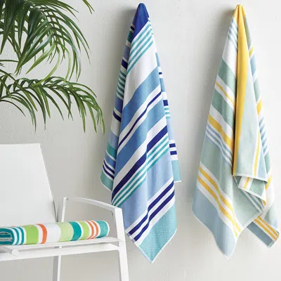 Get ready for your next pool or beach day. This multicolored beach towel is woven in a horizontal stripe design for a dash of depth and texture. Made from 100% cotton, this highly absorbent towel will dry you off quickly, even after the longest swims. 100% cotton. 450 gsm for a plush and absorbent feel. Machine wash cold; tumble dry low. Do not bleach. Do not dry clean. Made in Portugal. A Frontgate exclusive. At Frontgate, our primary focus is quality. We guarantee that every product we sell will stand up to the supreme test our customers' satisfaction. To learn more about our policies, visit our Shipping & Processing, Returns & Exchanges and Warranty & Price Guarantee pages.