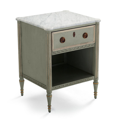 A picture of French allure, our marble-topped chest exudes 18th-century refinement with brass-ring handles and cast escutcheons. It adds the modern convenience of a power strip on the back to accommodate USB or electric connections. Natural finish inside the slow-close, full-extension drawer. The mahogany base is finished with fluted column legs and tapered arrow feet for top-to-bottom beauty. Design based on an antique French dresser . Dovetail construction of full-extension drawer with dust liner . French Patina finish is a light blue/green patina. Each item has a 15-step hand-finishing process & aged patina; finishes may slightly vary. French Linen version has Crema Marfil marble top; French Patina version has honed Carrara marble top. Due to natural variations in marble, each piece is inherently unique. Inside of drawer features a natural wood finish . Includes a power outlet with two electric sockets and two USB ports. Brass hardware . Fluted legs tapered into arrow feet . Included anti-tip kit is required for installation; kit consists of safety-tested mounting hardware, a nylon strap, and instructions. To prevent injuries from furniture tipping over, this item must be permanently affixed to the wall; professional installation is recommended. To prevent injuries or damage to item, recommended team lift (two or more people) for furniture placement. Arrives assembled. Imported. A Frontgate exclusive.
