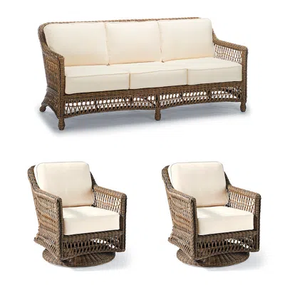 Hampton 3-pc. Sofa Set With Two Swivel Lounge Chairs In Driftwood Wicker