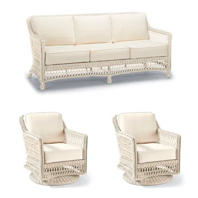 Hampton 3-pc. Sofa Set With Two Swivel Lounge Chairs In Ivory Wicker