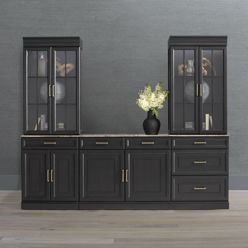 <div class="updp-details-container">Beautiful and functional, our versatile collection of modular cabinets can be arranged - and rearranged - to create your ideal configuration with the look of custom, built-in cabinetry that can be used in any room.Set includes two top cabinets with glass doors, a 28" base cabinet with solid doors, a 44" base cabinet with solid doors and a 28" base cabinet with drawers. Solid oak frames. Hardwood with oak veneer side panels. Espresso finish. Antiqued brass hardware. Finished on all sides. Maximum drawer capacity: 30 lbs.. Maximum shelf capacity: 30 lbs.. Indoor use only. Cabinets arrive assembled. Hunter 28" Base Cabinet with Solid Doors:Silver travertine top. Due to natural variations in stone, each piece is inherently unique. One adjustable shelf. One drawer. Slow-close hinges. Full-extension metal drawer glides. Front and back levelers. Hunter 28" Base Cabinet with Drawers:Silver travertine top. Due to natural variations in stone, each piece is inherently unique. Three drawers; two are sized to accommodate letter or legal-size files. Full-extension metal drawer glides. Removable metal file brackets. Front and back levelers. Hunter 44" Base Cabinet with Solid Doors:Silver travertine top. Due to natural variations in stone, each piece is inherently unique. Two drawers. Full-extension metal drawer glides. Slow-close hinges. One removable shelf. Front and back levelers. Hunter 28" Top Cabinet with Glass Doors and LED Lights:Wood doors with glass. Slow-close hinges. Two adjustable shelves. LED lights turn on/off by touching the inner door hinge, showcasing the interior. A Frontgate exclusive.At Frontgate, our primary focus is quality. We guarantee that every product we sell will stand up to the supreme test our customers satisfaction. To learn more about our policies, visit our Shipping & Processing, Returns & Exchanges and Warranty & Price Guarantee pages.