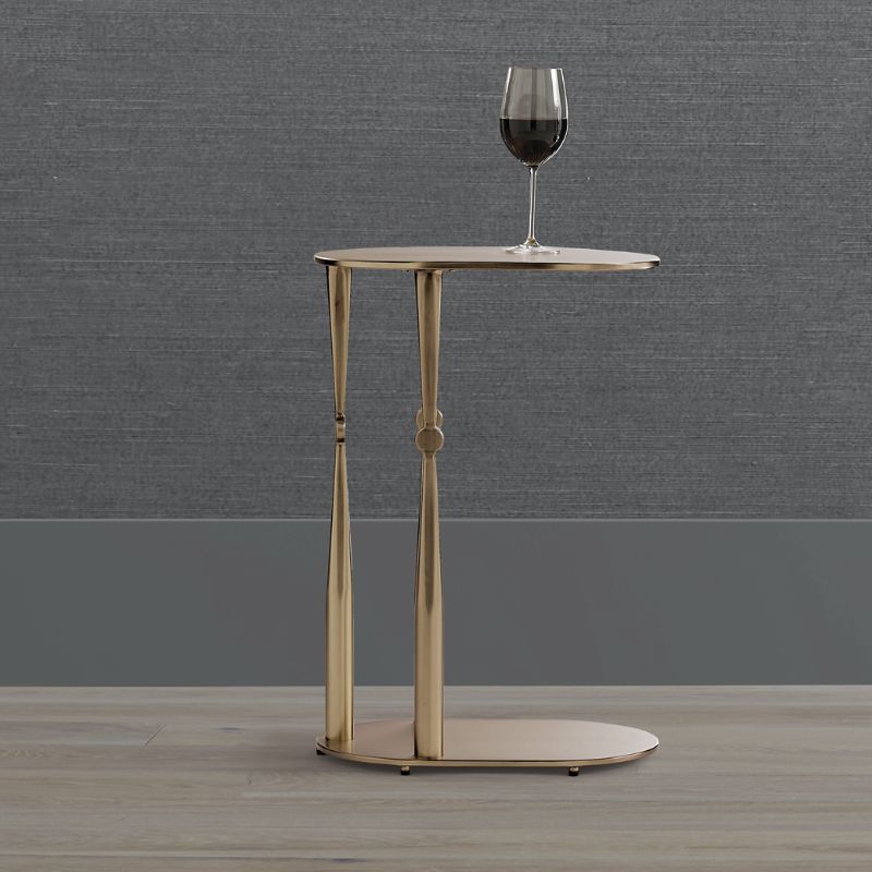 <div class="updp-details-container">Brass-finished iron and three spindle-style supports create a timeless design that nonetheless caters to todays needs. With an oval shape, slim silhouette and 25" clearance between the tabletop and base, you can slide the tabletop over a chair arm or your lap to easily reach a drink or laptop computer.Crafted of iron with a brass finish. Tabletop can be pulled over a chair arm or over your lap when seated. For indoor use. Clean tabletop with a soft cloth. Arrives assembled. A Frontgate exclusive.At Frontgate, our primary focus is quality. We guarantee that every product we sell will stand up to the supreme test our customers satisfaction. To learn more about our policies, visit our Shipping & Processing, Returns & Exchanges and Warranty & Price Guarantee pages.