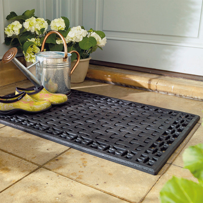 We created this elegant Lattice Rubber Door Mat to complement the look of your homes wrought iron detailing. Our timeless lattice and quatrefoil pattern is made from extremely strong, rubber that resists cracking in cold weather or buckling under extreme heat.Openwork lattice design. 3/4"-thick black rubber. Resists fading. Simply rinse with hose to clean. Multiple sizes available. <b class="prop65warn"> WARNING: Combustion byproducts produced when using this product include carbon monoxide and other chemicals known to the State of California to cause cancer, birth defects, or other reproductive harm. For more information go to www.P65Warnings.ca.gov. Imported.