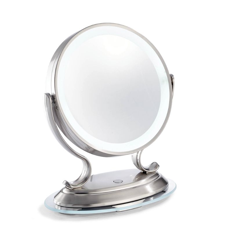 An oversized 12" mirror surface and ultra-bright LED lighting ensures that you leave the house looking your best. The reflective base supports a two-sided optical-glass mirror for both 1x life-size and 5x magnification. With an infinity dimmer touch pad to adjust the brightness to your ideal illumination, this mirror is ideal for touch-ups, detailed grooming, makeup application and hair styling. Oversized 12" mirror head. Powerfully bright LED surround light. Infinity dimmer touch control pad. 5x magnification on one side, 1x life size on the other. 360-degree endless mirror head rotation. High clarity optical-quality mirror glass. AC power adapter (included, 6 ft. cord). In Polished Nickel, Satin Nickel and Polished Brass. At Frontgate, our primary focus is quality. We guarantee that every product we sell will stand up to the supreme test our customers' satisfaction. To learn more about our policies, visit our Shipping & Processing, Returns & Exchanges and Warranty & Price Guarantee pages.