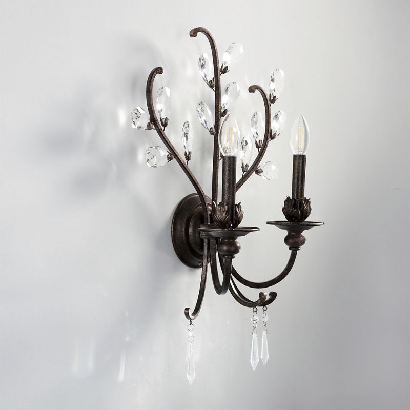 Inspired by our Louviere Fireplace screen, this lighting collection adds elegance to even the grandest interiors. The beautiful hand-cut crystals refract both electrical and natural light to create colorful prisms that dance across the room. Iron with a rich bronze finish. Optical-quality, K9 crystal is prized for clarity, brilliance and uniformity. 5-1/2" dia. back plate. Compatible with our Tapered Chandelier & Sconce Shade . Two E12 sockets. Candelabra bulb type. Accommodates bulb up to 60W incandescent or energy-efficient equivalent (not included). Dimmer switch compatible (not included). Hardwire design; professional installation recommended. Damp UL listed; suitable for damp environments. Dust with soft, dry cloth. Imported. A Frontgate exclusive. At Frontgate, our primary focus is quality. We guarantee that every product we sell will stand up to the supreme test our customers' satisfaction. To learn more about our policies, visit our Shipping & Processing, Returns & Exchanges and Warranty & Price Guarantee pages.